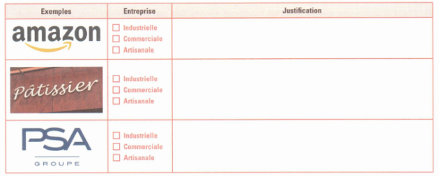 5. Pour chacun des exemples suivants, précisez s’il s’agit d’une entreprise industrielle, commerciale ou artisanale. Vous justifierez vos réponses.
