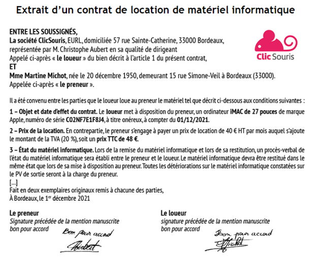 Document 1 - Extrait d'un contrat de location de matériel informatique