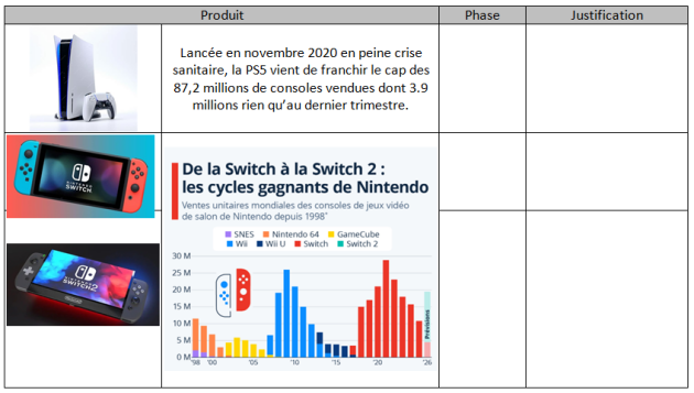 11. À l’aide du document 10, replacez sur le graphique les différentes phases du cycle de vie d’une console.