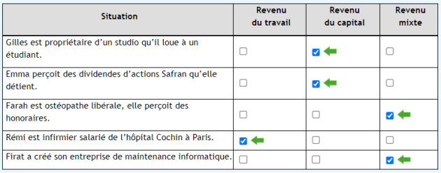 12. Mme Vinet est infirmière libérale et possède son propre cabinet médical dans lequel elle a investi une partie de son capital. Pourquoi ses revenus sont-ils considérés comme mixtes ?