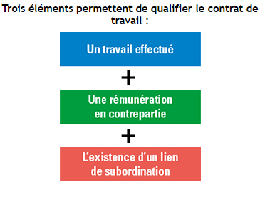 Le contrat de travail est une convention par laquelle une personne, le salarié, s'engage à exécuter un travail pour le compte et sous la subordination d'une autre personne, l'employeur, en contrepartie d'une rémunération.