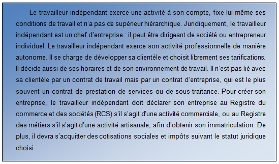 Document 3 : Le statut de travailleur indépendant