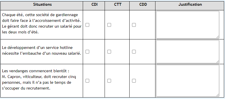9. Replacez dans le schéma les parties du CTT : entreprise utilisatrice, entreprise de travail temporaire et salarié.