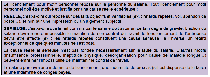 A. LE LICENCIEMENT POUR MOTIF PERSONNEL⚓