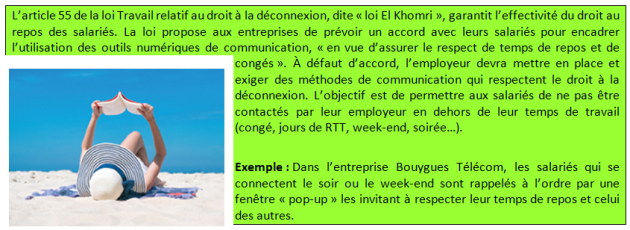 9. Quel est l’objectif du droit à la déconnexion énoncé par la loi El Khomri de 2018 ?