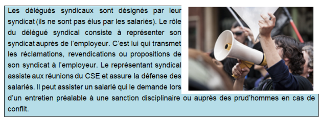 11. Différenciez les membres du CSE et les délégués syndicaux.